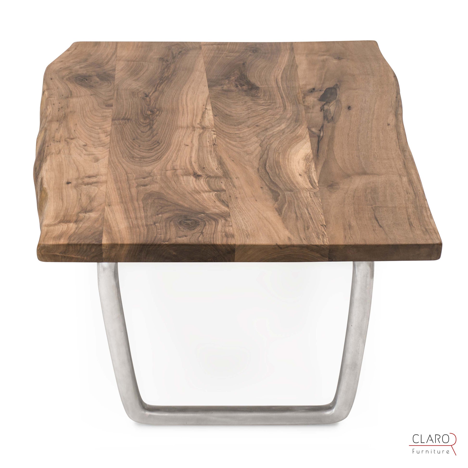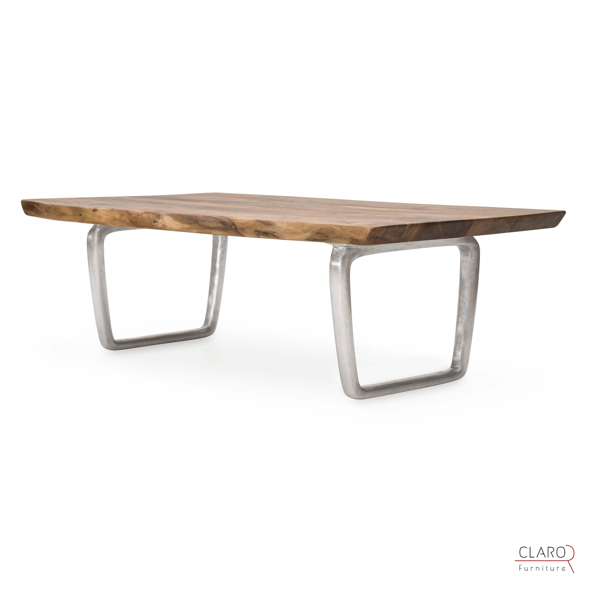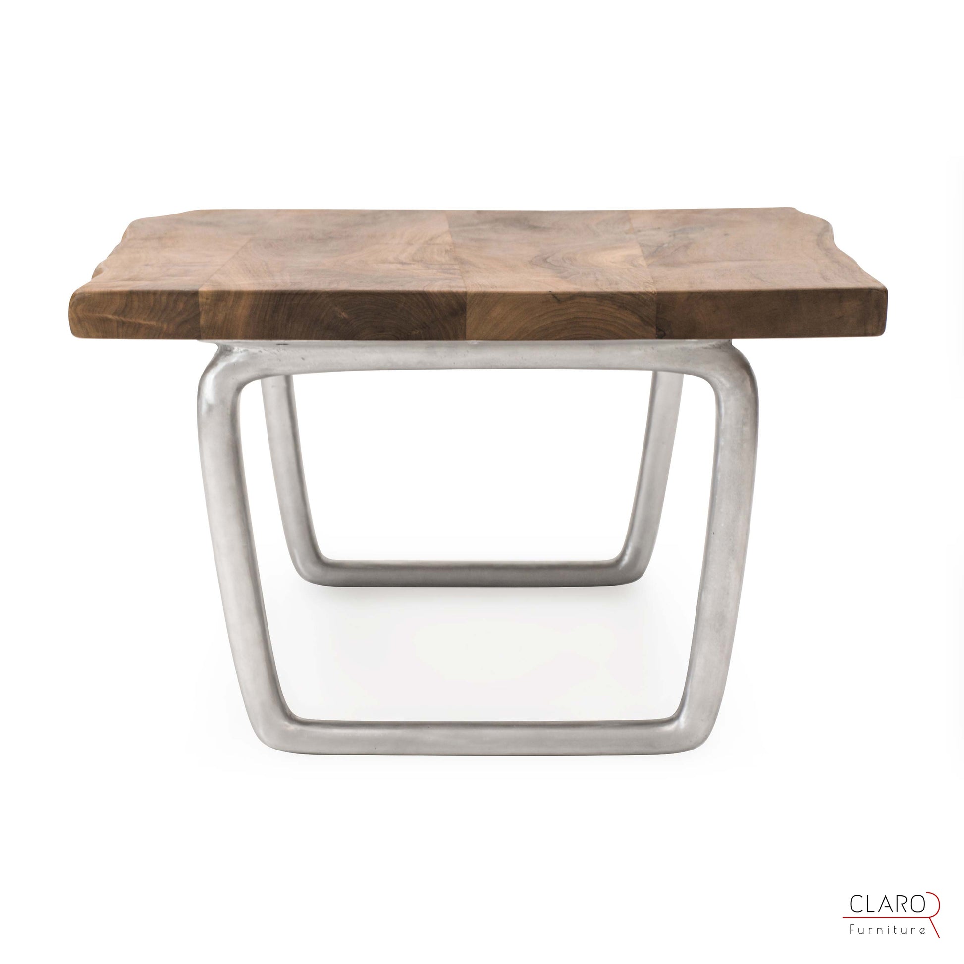 Bu sehpayı oluşturmak için zengin damarlı ceviz levhalar özel olarak seçildi. Levhalar birleştirildikten sonra kenarlarına elle şekil verildi. Pürüzsüz parça satensi bir parlaklık sağlamak amacıyla birden fazla koruyucu yağ tabakasıyla dikkatlice kaplandı. Sehpa, Claro tasarımı mat fırçalanmış iki adet döküm alüminyum ayakla gelir.