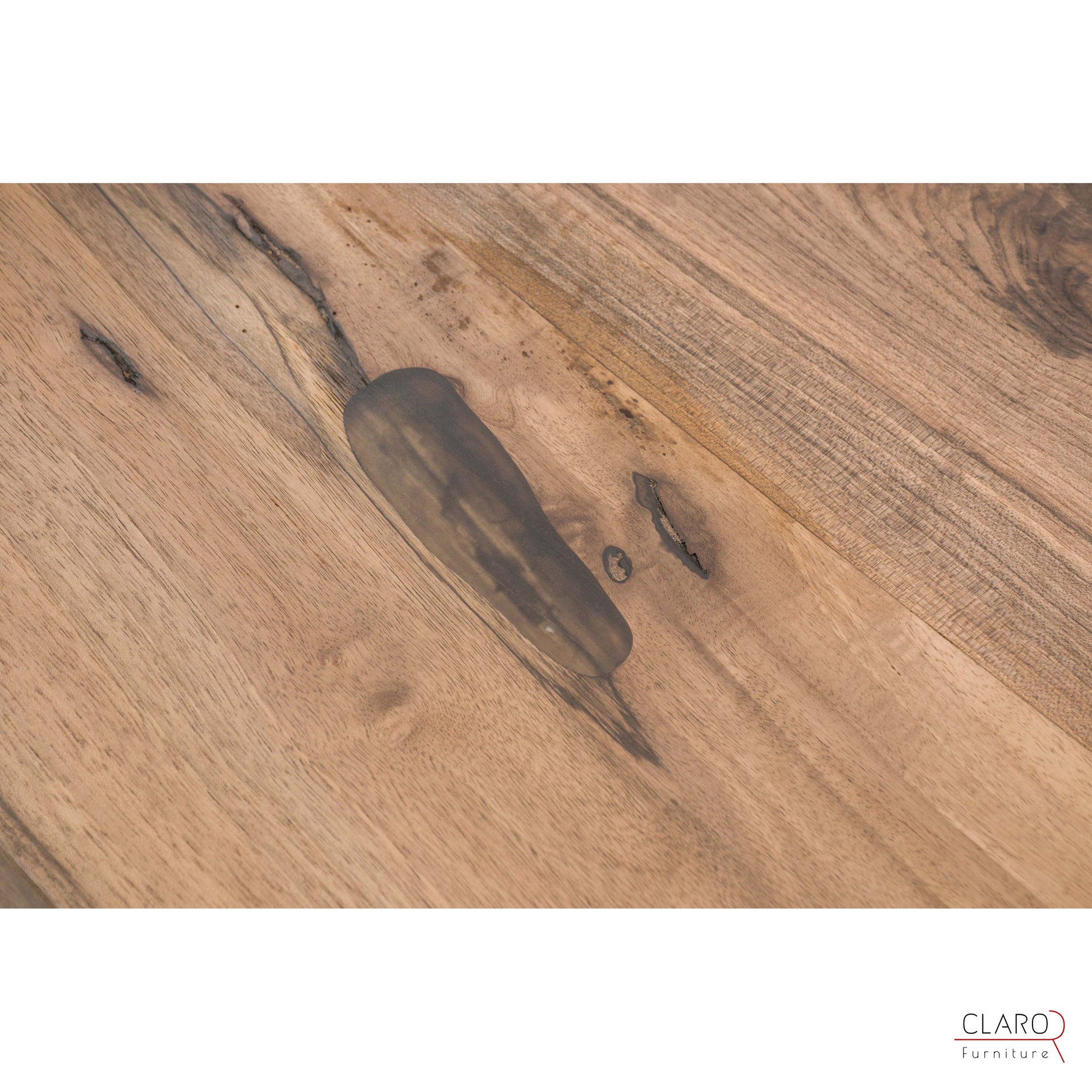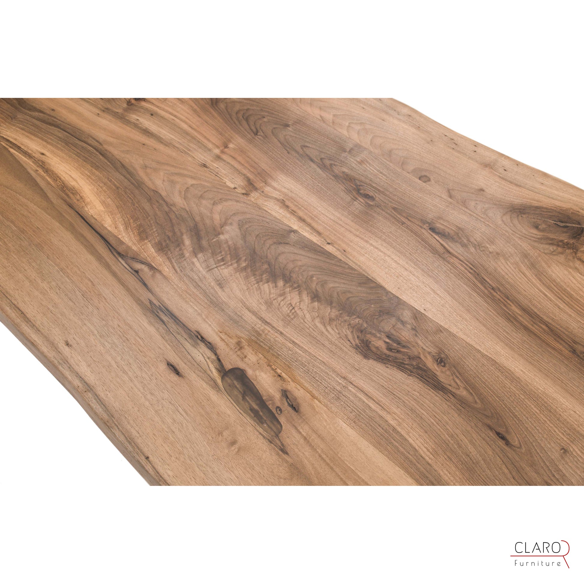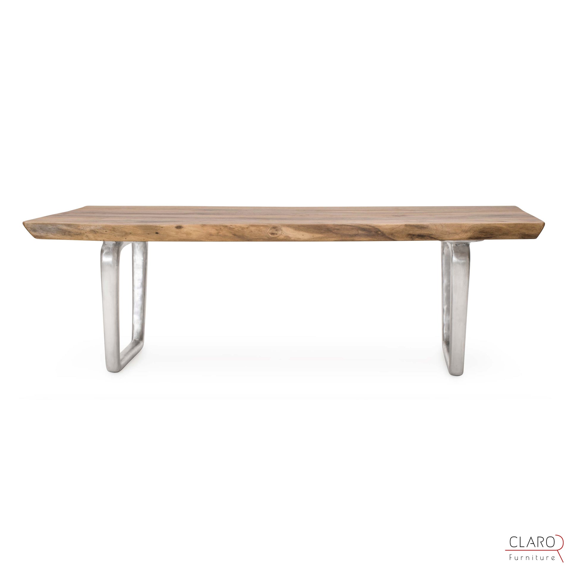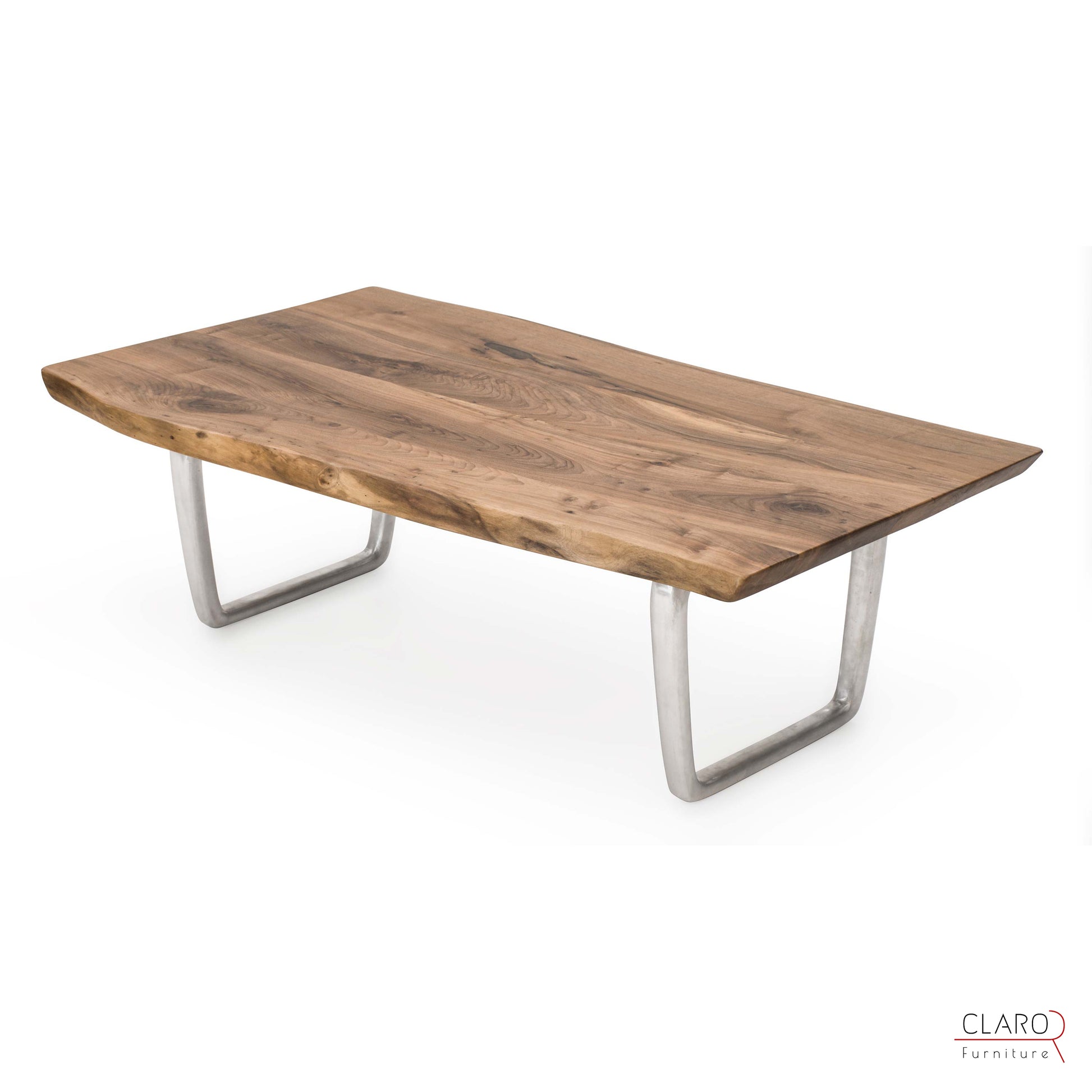 Bu sehpayı oluşturmak için zengin damarlı ceviz levhalar özel olarak seçildi. Levhalar birleştirildikten sonra kenarlarına elle şekil verildi. Pürüzsüz parça satensi bir parlaklık sağlamak amacıyla birden fazla koruyucu yağ tabakasıyla dikkatlice kaplandı. Sehpa, Claro tasarımı mat fırçalanmış iki adet döküm alüminyum ayakla gelir.